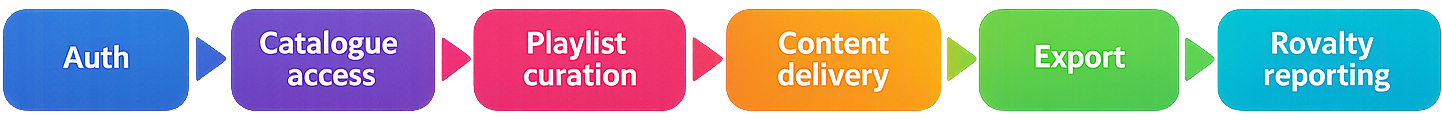 Tuned Global's platform handles the full pipeline: catalogue access, playlist curation, rights-cleared content delivery, audio and metadata file export. By the end of this guide you'll understand the end-to-end workflow from catalogue to cabin.